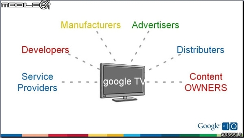 Google TV的產(chǎn)業(yè)鏈基于開放的電視平臺可讓用戶自由享用網(wǎng)絡(luò)上的多元內(nèi)容,并讓讓開發(fā)者可為電視開發(fā)應(yīng)用程序。由于Google無法獨(dú)立達(dá)成這個(gè)目標(biāo),而需要整個(gè)電視產(chǎn)業(yè)體系一起來完成,其中包括服務(wù)供貨商、軟件開發(fā)者、硬件制造商、廣告主、經(jīng)銷商、內(nèi)容供貨商等。另外AdWords以及顯示型廣告可以跟平常一樣透過瀏覽器顯示于網(wǎng)站中,廣告與Google TV并沒有直接的整合的關(guān)系。