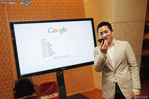 既然Google的版本已經(jīng)具有Android平臺手機(jī),以手機(jī)遙控電視是已經(jīng)存在的技術(shù),因此Google當(dāng)然也不會放過以Android平臺設(shè)計(jì)App讓用戶下載使用,除了把手機(jī)拿來取代一般電視遙控器外,也把Google的語音搜尋強(qiáng)項(xiàng)放進(jìn)來。Mickey Hyunyu Kim當(dāng)場用語音成功讓Google TV1辨識關(guān)鍵詞。