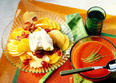 ??? 法國菜在材料的選用較偏好牛肉、小牛肉、羊肉、家禽、海鮮、蔬菜、田螺、松露、鵝肝及魚子醬;而在配料方面采用大量的酒、牛油、鮮奶油及各式香料;在烹調時,火侯占了非常重要的一環(huán),如牛、羊肉通常烹調至六、七分熟即可;海鮮烹調時須熟度適當,不可過熟,尤其在醬料(Sauce)的制作上,更特別費功夫,其使用的材料很廣泛,無論是高湯(Stock)、酒、鮮奶油、牛油或各式香料、水果等,都運用的非常靈活。