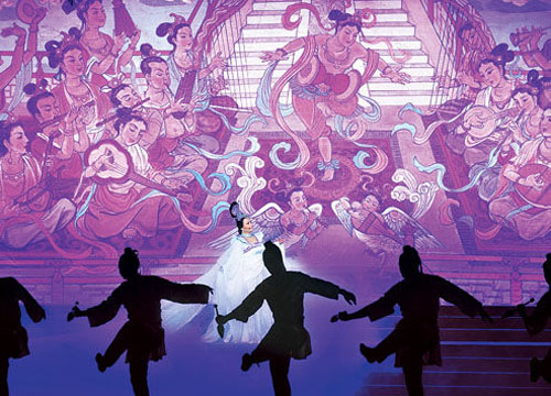 壁畫上的飛天舞,看美人兒們衣羅綺,曳錦繡,耀珠翠,施香粉,盛裝登場(chǎng),舞低楊柳樓心月,歌盡桃花扇底風(fēng),即使你對(duì)佛教浸淫不深,也不能不被莫高窟的藝術(shù)氣質(zhì)深深打動(dòng)。