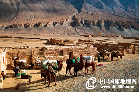 苦魯勒村是散落在浩瀚喀喇昆侖山脈里的一個村子,也是我們此行嚴格意義上的起點。汽車到此就再也不能前進了,從這里出發(fā),我們就只能靠駱駝和徒步了。