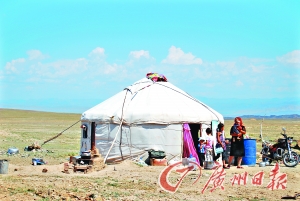走著走著,忽然發(fā)現(xiàn),草原 上有星星點點的物體在移動,定睛一看,原來是附近放牧的牛羊,悠然自得地低頭吃著草。不遠(yuǎn)處就是哈薩克人的白色氈房,估計這些牛羊就是哈薩克人家在此放養(yǎng) 的。來到氈房前,哈薩克小孩正在追趕玩耍,見到生人只是害羞地笑笑,然后又自顧玩自己的去了。倒是男主人在家,以不太流利的普通話打招呼,然后聊了起來。 男主人說這時候來賽里木湖雖然季節(jié)對了,但還不是最好的時候,每年7月底8月初在賽里木湖會舉辦那達慕大會,那時候才真正是賽里木湖最好玩的時節(jié)。周圍方 圓百里的蒙古族和哈薩克族兄弟姐妹們會相約來到湖邊,摔跤、騎馬、姑娘追等比賽輪番上演,相當(dāng)熱鬧。