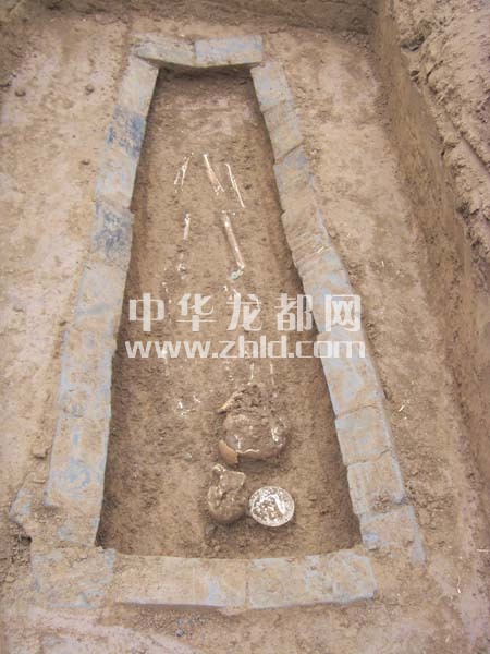 ????墓葬平面呈南北長2.5米、東西寬0.9米的長方形,墓室深0.6米。清理至墓室底部時,勘探人員發(fā)現人骨一具,頭向正南,經鑒別性別為男性,年齡在60歲左右,仰身直肢葬。在墓室南部清理出隨葬器物白釉瓷壺和白釉瓷碗。在人骨腰部清理出當時的銅錢數枚。根據墓葬型制、開口層位,推測該墓為宋代磚室墓葬。