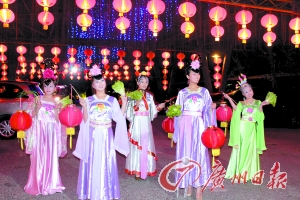 展出的傳統(tǒng)彩燈包括芝麻燈、蛋殼燈、刨花燈、稻草燈、魚鱗燈、谷殼燈、瓜籽燈及鳥獸花樹燈等,重現(xiàn)隱賢山莊唐宋年間“火樹銀花合,星橋鐵鎖開。暗塵隨馬 去,明月逐人來(lái)”的燈月交輝、游人如織、熱鬧非凡的盛景。而小孩豎燈籠,則是將小紙燈籠挑在長(zhǎng)桿的一頭,高高豎起來(lái),看誰(shuí)豎得最高最直,在古代的嶺南,這 也是一項(xiàng)傳統(tǒng)的民間游園活動(dòng)。