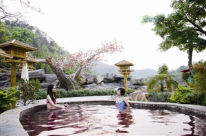 ????地派溫泉70多個療效各異的主題泡池參差坐落在祥云谷蒼郁的翠竹之中,其中有四大美人湯、陽春白雪湯、木通池等。池中泉水是世界稀有的蘇打溫泉水,屬于偏硅酸泉,含稀有的氡元素,無色無味,水質(zhì)細(xì)膩,并富含鍶、鋰、鋅、碘等75種對人體有益的溫泉微量元素,對心血管、胃、骨骼生長、內(nèi)循環(huán)系統(tǒng)等均有保健作用,同時對人體主動脈具有軟化作用,是華南地區(qū)難得的保健、養(yǎng)生溫泉。
