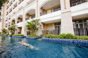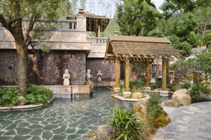 ????不同區(qū)域特色鮮明:在中式風(fēng)情區(qū),一條古典中式景觀長廊,仿佛帶你穿越時空隧道,進(jìn)入中式的皇家園林,置身曲徑通幽,欣賞雕梁畫棟;在歐式風(fēng)情區(qū),融匯了歐式貴族庭院與田園派園林風(fēng)韻的歐式園藝風(fēng)情,溫泉池掩映于花卉叢中,私密溫馨;在泰式風(fēng)情區(qū),你則會看到大自然火山巖泉池和靜臥溫泉池邊的泰式?jīng)鐾ぁ送?,另有動感十足的溫泉沖浪池,溫泉水療按摩設(shè)施,你可以盡享悠然世外,人水合一的浪漫寫意。