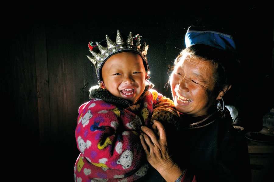 雷山縣也蒙村,村民窩里當(dāng)?shù)膬鹤觾合被丶伊?,見到期盼已久的孫子晶晶,婆婆窩里當(dāng)無比高興。