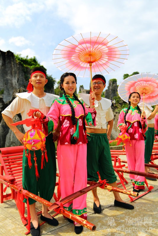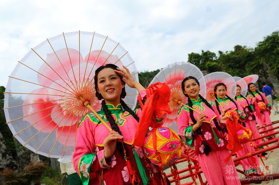 ????幺妹和幺哥在為游客展演自己的靚麗與帥氣。
