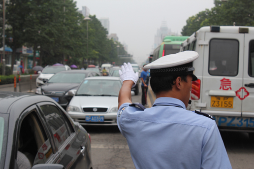 ???????記者看到,一些路段和路口的車(chē)流量雖然大,但多數(shù)車(chē)輛能遵守交通法規(guī),商販占道經(jīng)營(yíng)和市民亂停車(chē)是造成交通擁堵的主要原因。王立新說(shuō):“我們每天都對(duì)停在路邊的車(chē)進(jìn)行拍照并上傳做違法處理。”當(dāng)路口出現(xiàn)大量車(chē)輛時(shí),值勤交警就開(kāi)始用手勢(shì)指揮交通。“這時(shí)就不能按紅綠燈的時(shí)間來(lái)了,交警指揮更有變通性。但是有的車(chē)還不敢走,害怕被拍照。”王立新提醒廣大車(chē)主,當(dāng)路口出現(xiàn)大量車(chē)輛時(shí),車(chē)主按交警的指揮通行,即使是紅燈也不會(huì)受處罰。