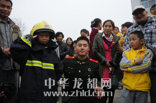 ???????11月9日,在周口市消防支隊(duì),一名孩子穿上消防服后,不由地敬了個(gè)軍禮,表示長(zhǎng)大了也要當(dāng)名消防員。當(dāng)日,周口天才幼兒園的孩子們?cè)诶蠋熀图议L(zhǎng)的陪同下,走進(jìn)周口市消防支隊(duì)特勤中隊(duì),學(xué)習(xí)消防安全知識(shí)。晚報(bào)記者 朱海龍 攝