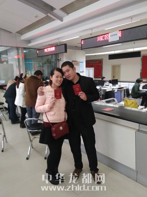 ???????昨天,在川匯區(qū)民政局婚姻登記處,一對剛領(lǐng)了結(jié)婚證的新人。