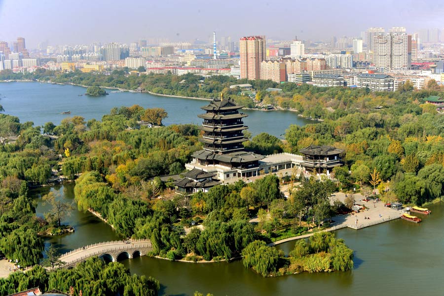 ????2014年11月,深秋時節(jié),被譽(yù)為山東濟(jì)南三大名勝之一的大明湖畔,湖中雖然殘荷搖曳,但岸邊翠柳依然郁郁蔥蔥,使高大雄偉的超然樓顯得更加傲骨迎秋、挺拔勁秀。