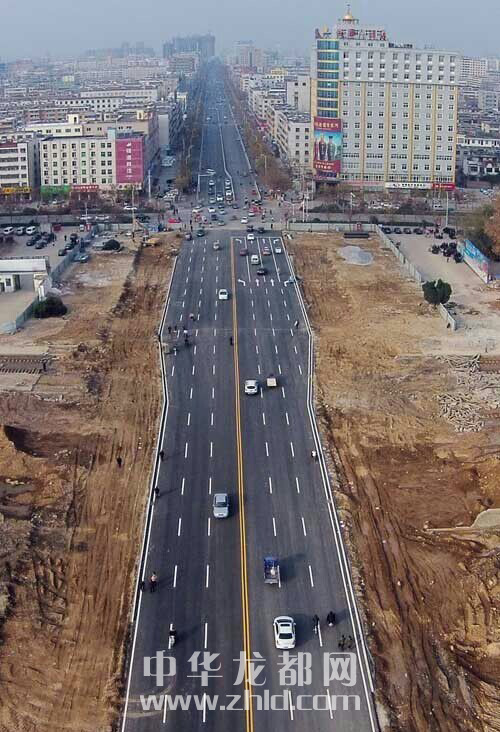 ???????昨天,周口晚報(bào)“周晚一號(hào)”航拍飛行器拍攝的打通后的八一大道。晚報(bào)記者 朱海龍 攝