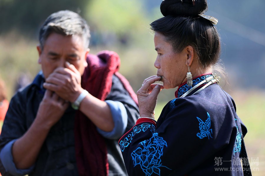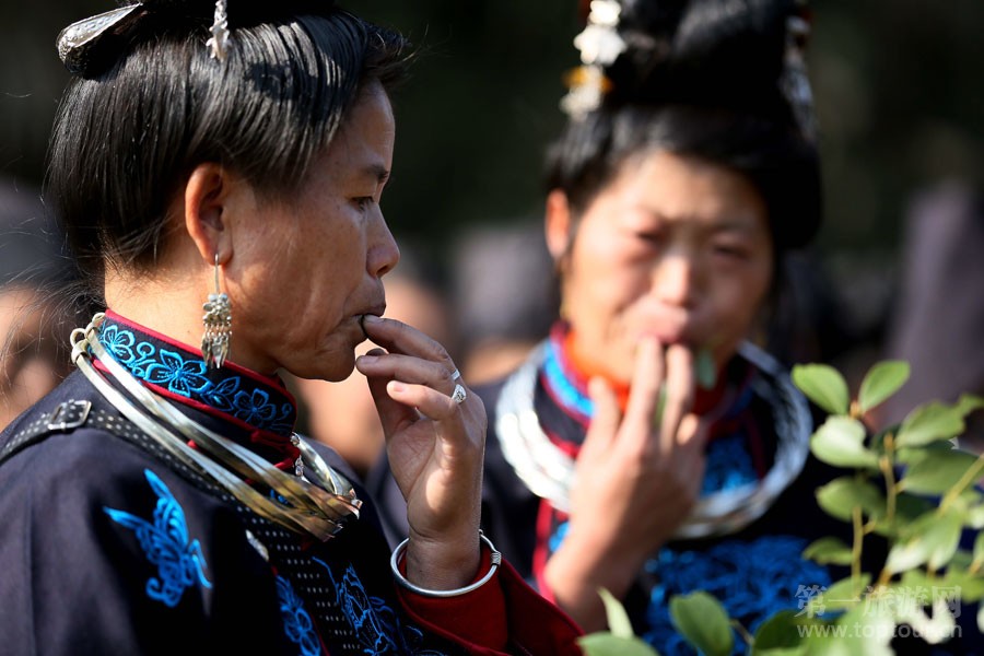 ????2014年12月8日,是貴州省丹寨縣揚武鎮(zhèn)楊頌村一年一度的苗族祭尤節(jié),當日,來自周邊村寨的苗族村民們身著盛裝歡聚一堂,舉行隆重的祭祀儀式,祭祀苗族先祖。并以跳蘆笙舞、唱苗歌的方式歡度這一古老的苗族節(jié)日?!凹烙裙?jié)”苗語叫“農(nóng)尤”,“農(nóng)”意為吃或祭,“尤”為人名,即苗族九黎部落的首領(lǐng)蚩尤。 “祭尤節(jié)”在2007年入選為貴州省第二批非物質(zhì)文化遺產(chǎn)名錄。