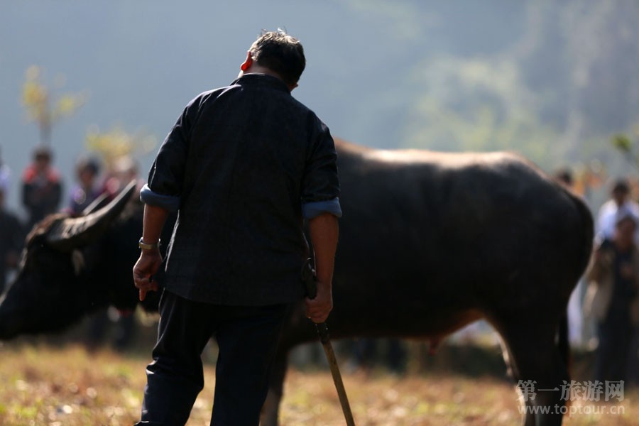 ????祭師在祭尤節(jié)祭祀儀式上準備宰殺作為祭品的水牛
