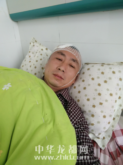 ???????醫(yī)生經(jīng)檢查發(fā)現(xiàn),胡效杰的頭部有3個傷口。當日上午,記者來到商水縣人民醫(yī)院,看到胡效杰的頭上纏著紗布,躺在病床上輸液(如圖)。