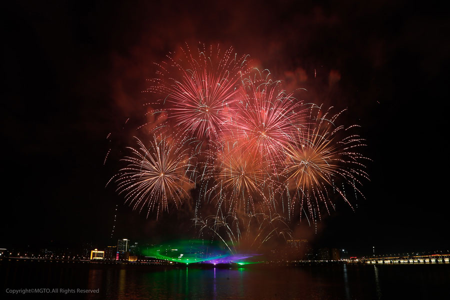 ????由澳門特別行政區(qū)政府旅游局主辦的“澳門國(guó)際煙花比賽匯演”始于一九八九年,當(dāng)時(shí)只有五支隊(duì)伍參賽。直至一九九五年,煙花匯演向前跨進(jìn)一步,由原來(lái)的五支參賽隊(duì)伍增加到十支,每晚由兩支不同隊(duì)伍表演?!鞍拈T國(guó)際煙花比賽匯演已”成為澳門一項(xiàng)國(guó)際性盛事,在世界上同類形比賽匯演中極具規(guī)模及地位。澳門特區(qū)政府旅游局將繼續(xù)致力提升煙花比賽匯演的水平及其在國(guó)際間的聲譽(yù),務(wù)求使它成為全球最負(fù)盛名的國(guó)際煙花匯演。至今已有百多間來(lái)自中國(guó)、菲律賓、泰國(guó)、中國(guó)臺(tái)灣、日本、韓國(guó)、澳洲、英國(guó)、瑞士、法國(guó)、德國(guó)、葡萄牙及西班牙等國(guó)家及地區(qū)的高水準(zhǔn)煙火公司曾經(jīng)參加“澳門國(guó)際煙花比賽匯演”。今年煙花匯演的時(shí)間:2015年9月5.12.19.27、10月1,地點(diǎn)旅游塔對(duì)出海面。圖為2014年煙花匯演的圖片。