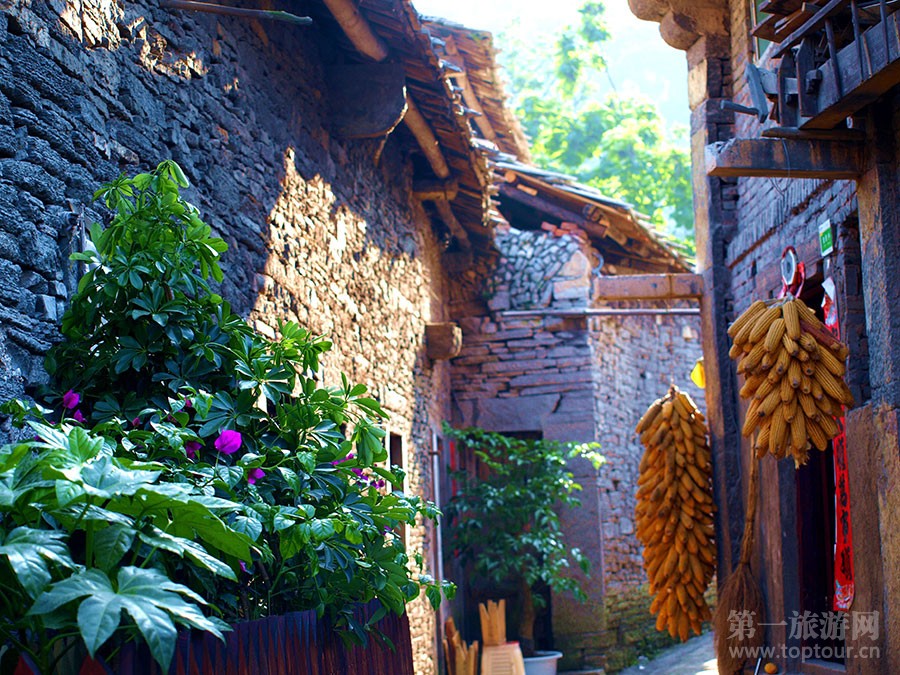 ????鮮花盛開(kāi)的村莊。本寨屯堡雖然是一個(gè)有600年歷史的古村,卻到處鮮花盛開(kāi),生機(jī)盎然。