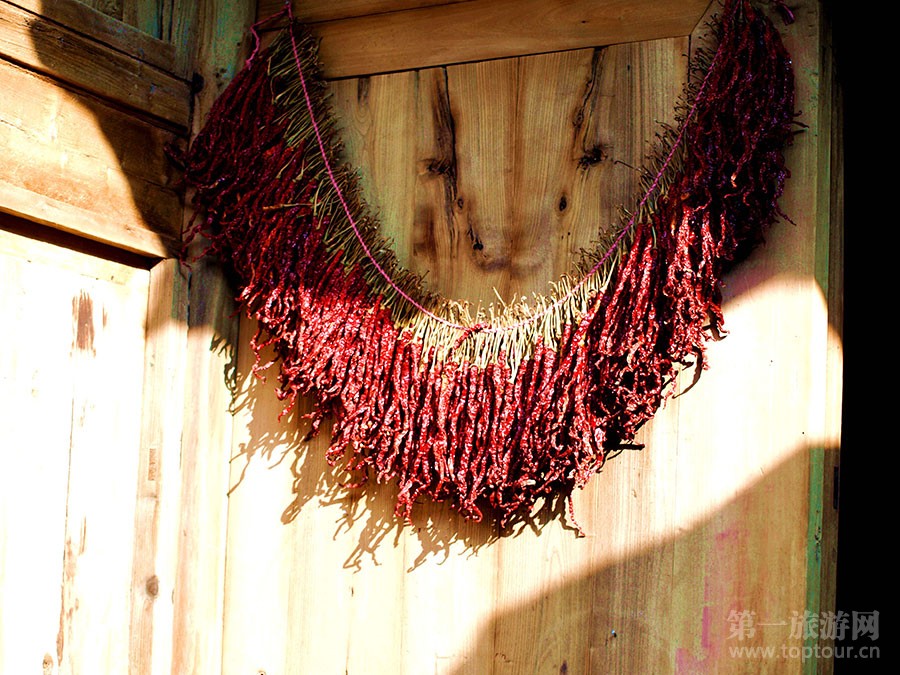????紅紅的辣椒墻上掛。這里是無(wú)辣不歡的貴州哦!