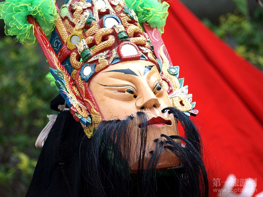 ????安順地戲面具。地戲,俗稱“跳神”,因演出不用戲臺(tái)和苗臺(tái),就在村野曠地進(jìn)行,故名地戲,為儺戲的一種,形成于明代初葉,是貴州省安順市屯堡人獨(dú)有的一種頭戴木刻假面的漢族民間戲劇,其由來(lái)與屯堡人的生存選擇有關(guān)。