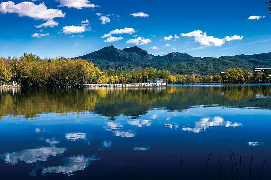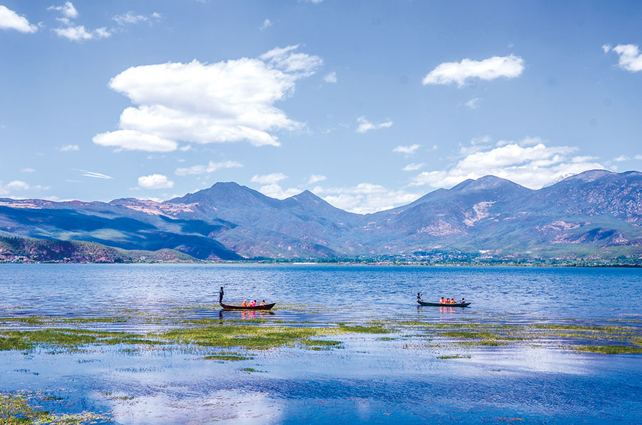 ????拉市海位于麗江城西10公里處的拉市壩中部,是云南省第一個以“濕地”命名的自然保護(hù)區(qū)。拉市海雖名為“?!?,實際卻是一個高原湖泊。那里水質(zhì)優(yōu)良,湖色優(yōu)美,湖面海拔2437米,盛產(chǎn)拉市鯽魚和海菜花,是麗江的一個聚寶盆。清晨的拉市海,水面上青紗似的薄霧尚未散去,靜伏了一夜的水鳥們已經(jīng)成群結(jié)隊在水面聚集,有的在岸邊引吭高歌相互致意,有的振翅甩尾抖擻精神,有的又似艦隊入水“晨練”,好不熱鬧。泛舟湖面,披著金色晨光的玉龍主峰倒映水中,為拉市海的美景平添了幾分神圣和英氣。