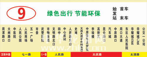 調(diào)整后,9路公交車的運(yùn)行線路是:從周漯路口出發(fā),經(jīng)漢陽中路、七一路、八一大道、人民路、大慶路,最后經(jīng)太清路到達(dá)華耀城終點(diǎn)站,往返運(yùn)行。