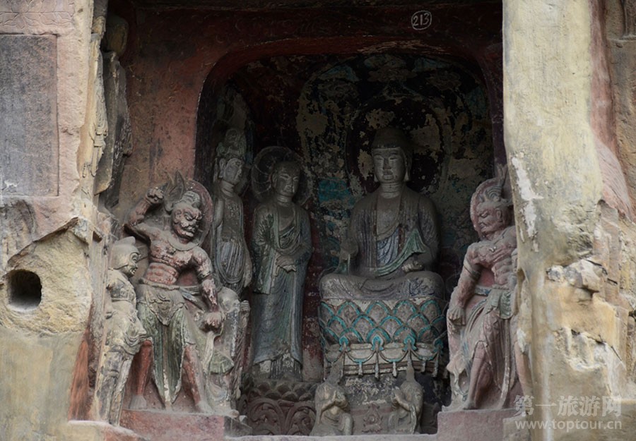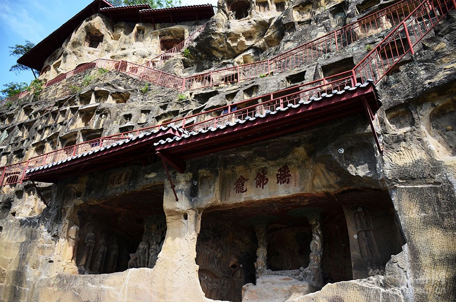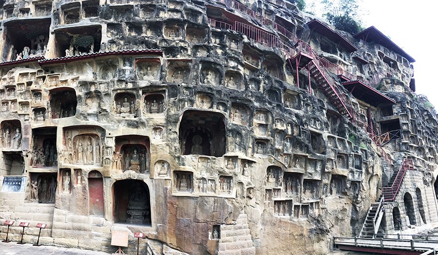 ????廣元千佛崖是四川境內(nèi)規(guī)模最大的石窟群,摩崖造像始于北魏時期,歷經(jīng)了近1500年,在高45米,南北長200多米的峭壁上,布滿了造像龕窟,重重疊疊13層,密如蜂房。