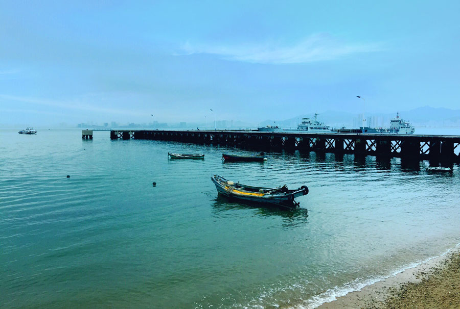 ????劉公島自然風(fēng)光秀美,遠遠望去海天一色。