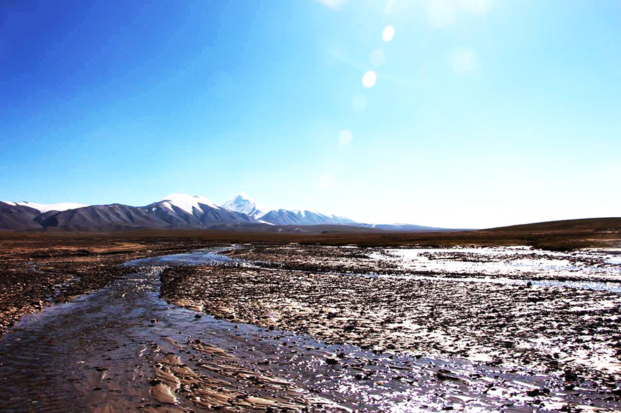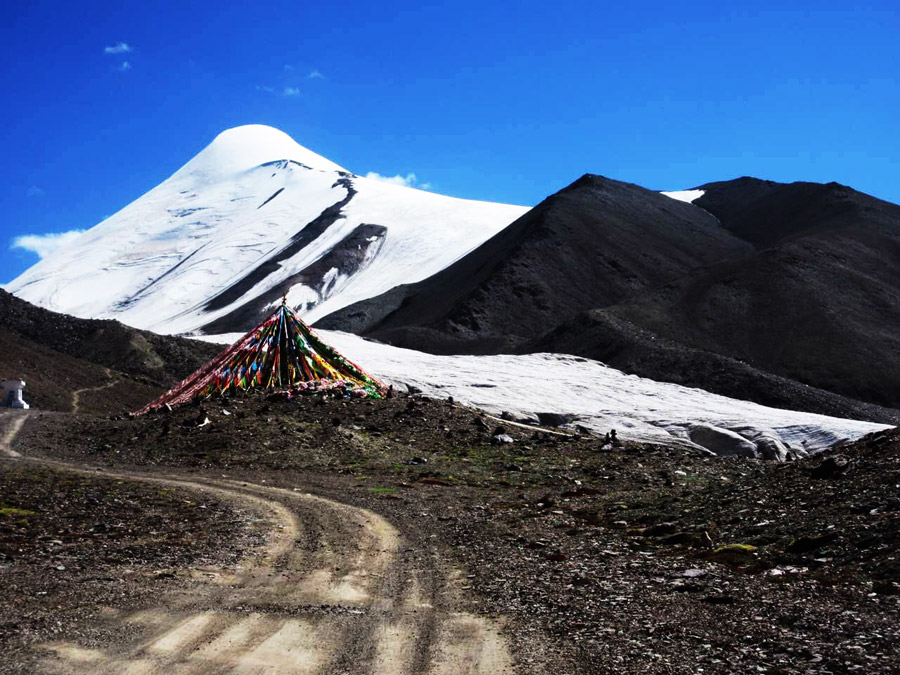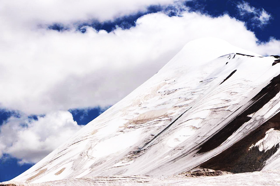????玉珠峰,位于青海格爾木南160公里的昆侖山口以東10公里,是昆侖山東段最高峰,南緩北陡,南坡冰川末端海拔約5100米;北坡冰川延伸至4400米。山峰頂部常年被冰雪所覆蓋,無巖石表露。冰雪坡較平緩。粒雪盆以下冰川,由于每年氣溫高,融化快,降水少,消融大于累積,屬消退型大陸冰川。(攝影 無疆)