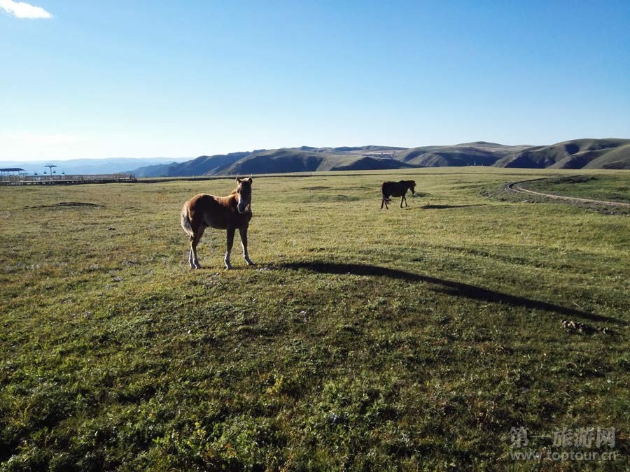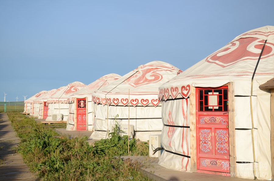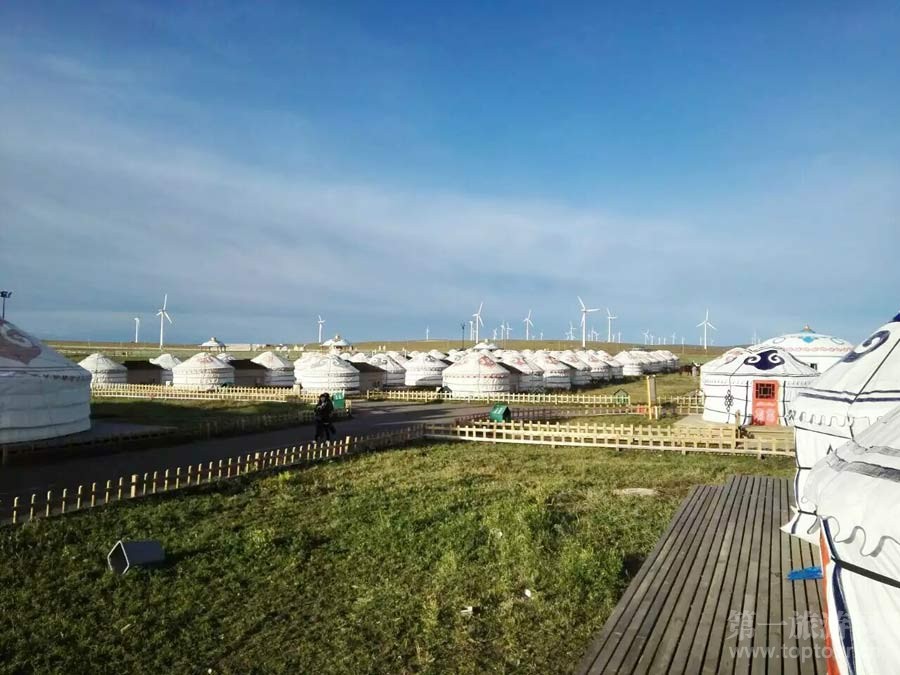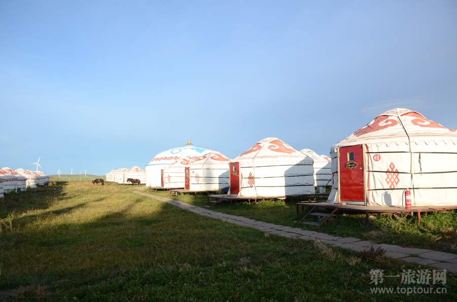 ????這里牛羊遍野、雄鷹飛翔,牧歌聲聲隨風(fēng)飄蕩;這里綠草如茵,鮮花斗艷,遍地的黃花閃耀金光,這里是位于內(nèi)蒙烏蘭察布的輝騰錫勒大草原。輝騰錫勒是蒙語(yǔ),意為寒冷的高原。九月剛過,這里已秋意正濃,冷風(fēng)列列,大片大片的風(fēng)車矗立在遼闊的草原上。汽車穿行其間,碩大的風(fēng)車就在我們身邊不緊不慢地旋轉(zhuǎn)著,成為一道獨(dú)特的風(fēng)景。輝騰錫勒草原著名的黃花溝景區(qū),以鮮花草原著稱,蒙古包點(diǎn)綴在茫茫草原間,像一朵朵可愛的蘑菇。蒙古馬在我們住宿的蒙古包外悠閑地啃吃青草。入夜,皓月當(dāng)空,烤全羊的香味飄蕩在空氣中。蒙古包內(nèi),熱情的蒙古族漢子和姑娘,將對(duì)這片遼闊土地的熱愛,化作豪邁而又渾厚的歌聲,醉倒游人一片!