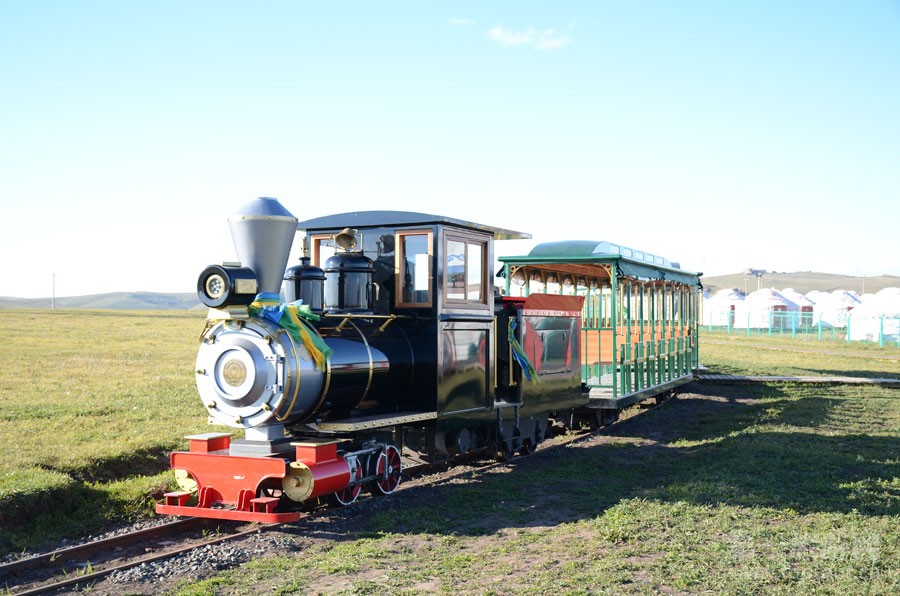 ????小火車帶我們?cè)诓菰暇従彺┬?,涼風(fēng)習(xí)習(xí),一路經(jīng)過風(fēng)車、駿馬、鮮花,一派迷人的草原風(fēng)光。