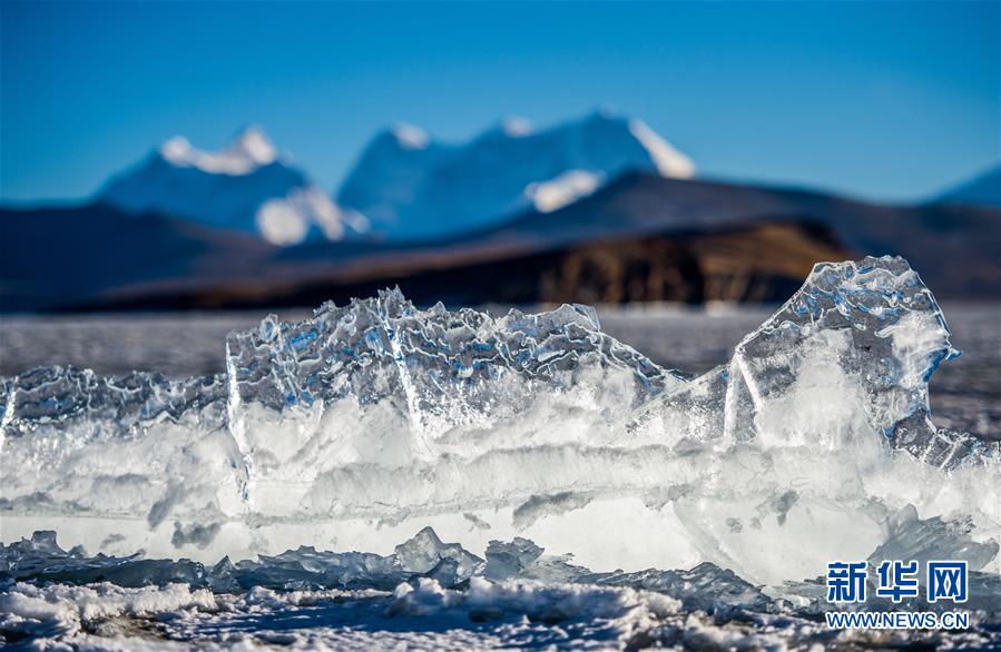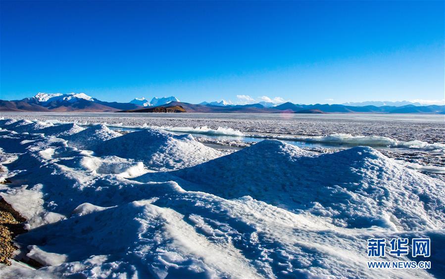 ????冰封的普姆雍措一景(1月19日攝)。海拔5010米的普姆雍措位于西藏浪卡子縣境內(nèi)。每年深冬季節(jié),普姆雍措都會出現(xiàn)美麗的冰封景觀。 新華社記者普布扎西攝