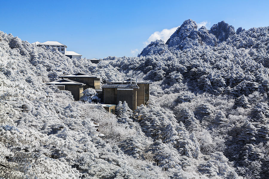 ????“處處路通琉璃界,時(shí)時(shí)身在水晶宮”。春雪紛飛的黃山,美麗壯觀。挺拔的松樹(shù)上落上了純白的雪花,在陽(yáng)光下照射下,銀光閃閃。最讓人期待的是雪后云海,山峰間,叢林中,云海翻滾,猶如驚濤駭浪般洶涌。方立華/攝