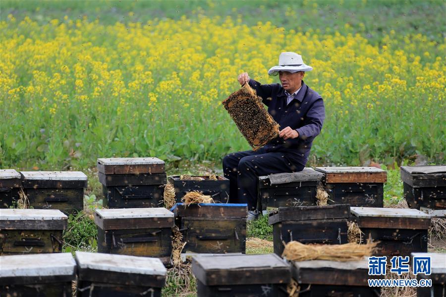 ????春回大地,萬物復蘇,安徽省黃山市各地的油菜花依次盛開,徽州傳統(tǒng)的養(yǎng)蜂人開始追花放蜂采蜜,在金燦燦的油菜花叢中干起自己的“甜蜜事業(yè)”。