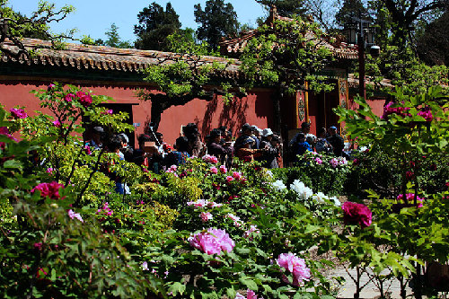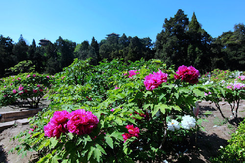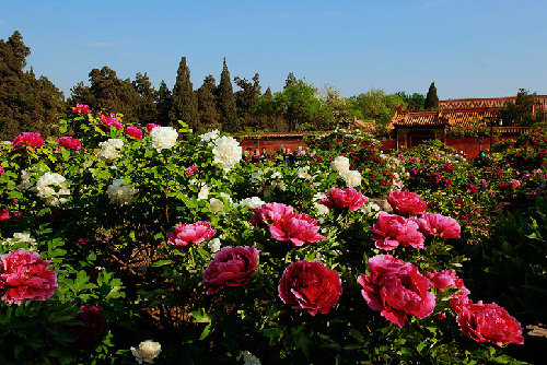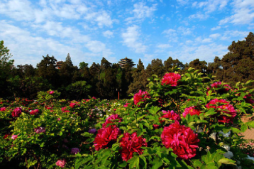 ????景山公園位于中國(guó)北京市西城區(qū)景山前街,坐落在明清北京城的中軸線上,西臨北海,南與故宮神武門隔街相望,是明、清兩代的御苑。公園中心的景山為堆土而成,曾是全城的制高點(diǎn)。位于觀德殿宮門南等處的牡丹園是京城內(nèi)最大的牡丹觀賞園,形成了獨(dú)特的花季景觀,每年5月全園200個(gè)品種的2萬(wàn)株牡丹競(jìng)相怒放,蔚為壯觀。景山的牡丹以其花大、色艷、株高、齡長(zhǎng)而名冠京華,品種上既有皇家御園傳統(tǒng)的牡丹名品,也有久負(fù)盛名的洛陽(yáng)牡丹、菏澤牡丹。其中,花王“姚黃”、花后“魏紫”、黑牡丹“青龍臥墨池”、綠牡丹“豆綠”、白牡丹“玉板白”更是稀有珍奇,姹紫嫣紅,將古老的景山公園裝扮得分外嬌嬈。每逢夏季,南門廣場(chǎng)的清韻景區(qū)內(nèi),紅蕖搖曳,荷香彌漫,與池塘邊姹紫嫣紅的串紅、福祿考、美女櫻、鳳仙、茵陳、小麗花相映成趣,渾然一體,盡顯清溢寧?kù)o之古韻。丁幫學(xué)/攝