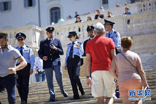 ????6月5日,中意警員在意大利羅馬西班牙廣場聯(lián)合巡邏。中國和意大利兩國警方在意警務聯(lián)合巡邏5日正式啟動,10名中國警員分成4組,從6月5日到25日分別在羅馬、米蘭、佛羅倫薩和那不勒斯4個城市與意方警員進行聯(lián)合巡邏,協(xié)助意警方處理與旅意中國游客安全有關的問題。新華社記者 金宇 攝