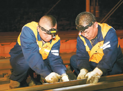 ????進(jìn)入暑運以來,旅客出行量不斷攀升。鐵路部門采取組織設(shè)備檢修維護(hù)等多項舉措,克服高溫等不利因素,為旅客出行保駕護(hù)航。圖為沈陽鐵路局長春電務(wù)段維護(hù)人員正在檢修長春站鐵道信號設(shè)備。