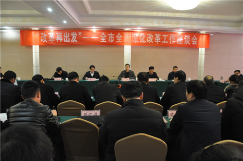 1月9日,“改革再出發(fā)”— 全市全面深化改革工作座談會在商水召開。會議對40年來全市改革開放取得的顯著成績和變化進(jìn)行暢談式總結(jié)回顧,對今后一個時期深化改革工作進(jìn)行相互啟發(fā)式思考謀劃。