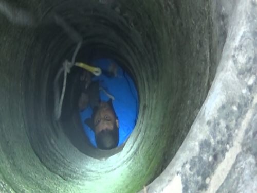 “氣溫很低,而且男子已經(jīng)在井下水里泡了一夜,好在他的意識(shí)還比較清醒?!毕乐嘘?duì)長李輝說,經(jīng)過交談,他們采取下繩套的辦法,讓男子自行把手腕伸進(jìn)繩套內(nèi),然后大家齊心協(xié)力把他拉了上來。