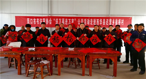 迎新春走基層,進(jìn)萬家送萬福。1月16日,周口市書法家協(xié)會的書法家們走進(jìn)西華縣遲營鄉(xiāng)徐橋村,舉行走基層送祝福活動。書法家們現(xiàn)場揮毫潑墨,一個個“?!弊周S然紙上,給基層群眾送去新春祝福。