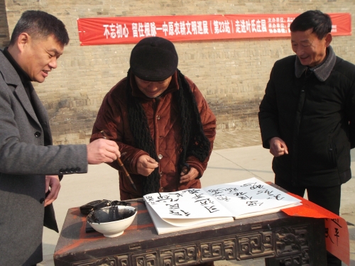 鄧城鎮(zhèn)范莊村72歲的范長印老人觀展后感觸頗深地說:“這些展品我很多都見過、用過,不過用起來真費(fèi)勁真受罪?。‖F(xiàn)在農(nóng)忙季節(jié)機(jī)器一響,糧食嘩啦啦就進(jìn)家了。我這個(gè)年齡的人最能體會(huì)到咱們國家的進(jìn)步和社會(huì)的美好!”隨后,老人在留言薄上用握慣農(nóng)具的粗糙大手握起毛筆寫下了“新時(shí)代,得民心”幾個(gè)字。字雖不工整但他的滿腔真情感動(dòng)了在場(chǎng)的群眾,大家把熱烈的掌聲送給范長印老人。