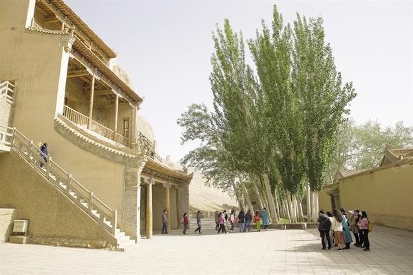 5月10日,游客在莫高窟參觀。
