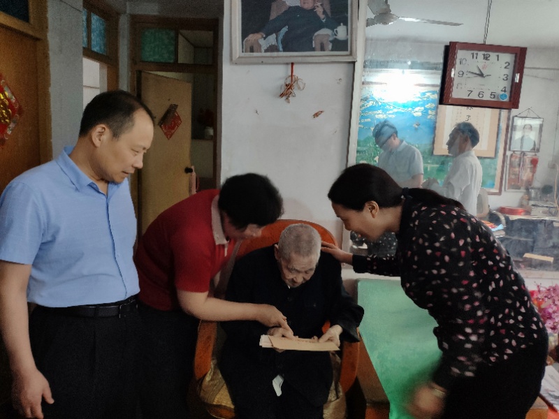 趙百廉老人家現(xiàn)年94歲,系黃埔軍校二十三期學(xué)員,同時(shí)是一名抗日老兵。張梅枝一行走進(jìn)趙百廉家中,對老人噓寒問暖,詳細(xì)了解老人的起居飲食、身體狀況,并為老人送上了慰問品、慰問金,感謝老人在抗日戰(zhàn)爭中作出的貢獻(xiàn)。同時(shí)向他送上黨和政府的關(guān)懷和節(jié)日的祝福,祝愿他身體健康,晚年幸福。