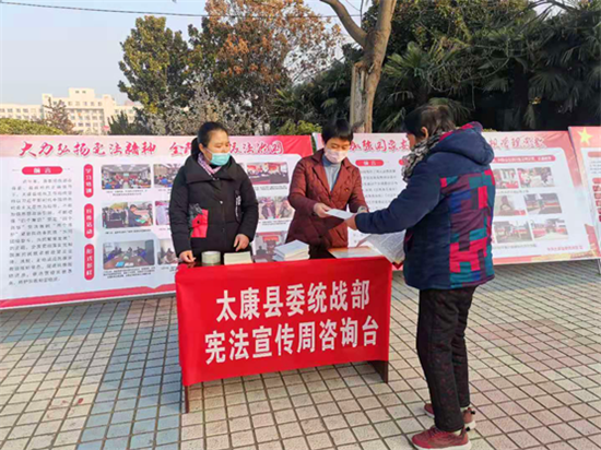 太康縣委統(tǒng)戰(zhàn)部制訂了《2020年全縣“憲法宣傳周”工作方案》,在縣人民廣場擺放展板,并設置咨詢臺,為市民發(fā)放河南省宗教條例手冊、宗教政策宣傳頁、宗教事務條例各300份。