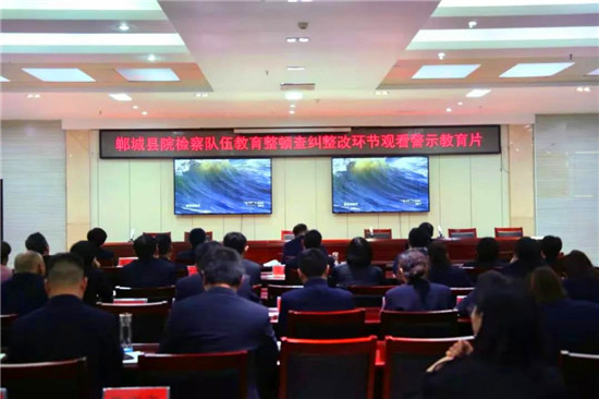 為進(jìn)一步推進(jìn)檢察隊伍教育整頓工作,做好隊伍教育整頓查糾整改階段思想發(fā)動工作,增強干警的廉潔自律意識,筑牢拒腐防變的思想防線,4月13日晚上,鄲城縣人民檢察院組織全體干警觀看警示教育片《“保護傘”自身難保,“坐地虎”坐進(jìn)監(jiān)牢》。