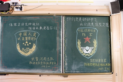“保家衛(wèi)國交給我們,祖國未來更看你們!”“你們負(fù)責(zé)好好學(xué)習(xí),我們負(fù)責(zé)保家衛(wèi)國!”在鄭州市第七十三中學(xué)的一間教室里,參與救災(zāi)援助的抗洪官兵們給同學(xué)們留下了兩幅黑板報(bào)。在師生們眼里,這就是名副其實(shí)的“最美黑板報(bào)”。