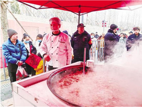 2月10日上午,備受矚目的公益萬(wàn)人大鍋菜在周家口南寨歷史文化街區(qū)開(kāi)鍋?;顒?dòng)現(xiàn)場(chǎng),市民們有序排隊(duì)等候取餐,大家圍坐在一起,品美食、話家常、迎新年,歡聲笑語(yǔ)不斷。