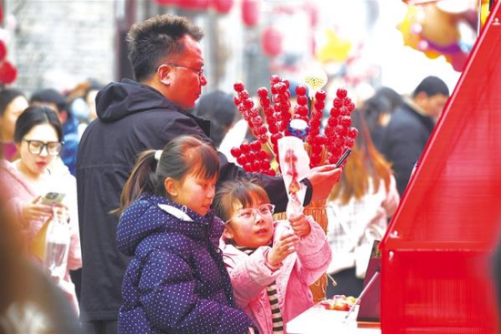 近日,周家口南寨歷史文化街區(qū)擊鼓開(kāi)街,第三屆“三川十館·春會(huì)”同步啟幕。街巷深處,兩位小朋友在家長(zhǎng)陪同下挑選冰糖葫蘆,笑語(yǔ)盈盈。