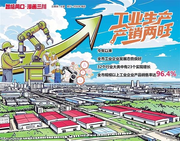 今年以來,全市工業(yè)企業(yè)發(fā)展態(tài)勢良好,32個行業(yè)大類中有23個實現(xiàn)增長,增長面達71.9%。其中,精制食用植物油產量同比增長80.2%,飲料產量同比增長75.2%,塑料制品產量同比增長39.9%,紙制品產量同比增長37.6%,服裝產量同比增長37.5%,中空玻璃產量同比增長28.3%。全市規(guī)模以上工業(yè)企業(yè)產品銷售率達96.4%,呈現(xiàn)出量增質優(yōu)的良好發(fā)展態(tài)勢。記者 付永奇 周彥 文/圖