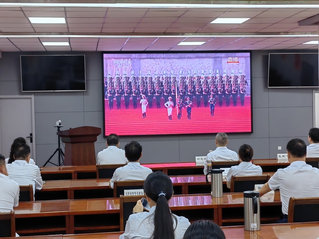 收看過程中,大家心情澎湃,感慨萬千。現(xiàn)場氣氛莊重而熱烈,大家全神貫注,聆聽習(xí)近平總書記重要講話,滿懷激動(dòng)與自豪的觀看閱兵儀式的全過程。當(dāng)威武雄壯的三軍儀仗隊(duì)邁著鏗鏘有力的步伐率先通過天安門廣場時(shí),當(dāng)一個(gè)個(gè)裝備方隊(duì)展示著彰顯國家實(shí)力的現(xiàn)代化尖端武器時(shí),當(dāng)戰(zhàn)機(jī)梯隊(duì)以恢宏陣勢(shì)呼嘯掠過蒼穹時(shí),大家內(nèi)心迸發(fā)出由衷的贊嘆,為祖國日益強(qiáng)盛而自豪。